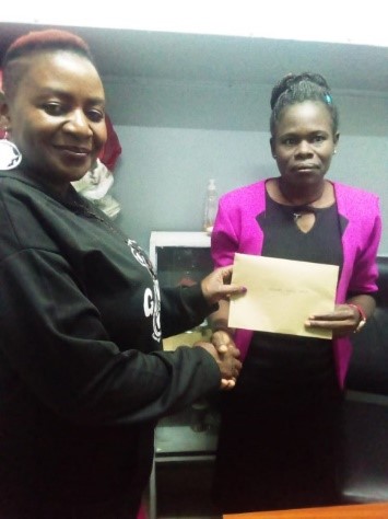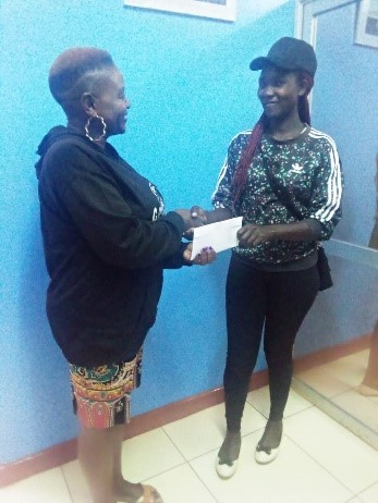 Spence Chemutai Receiving support from Adah, the WISO representative.