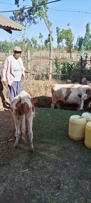 Lydiah Amisi is a single mother and a Christian.  She is a Christian. She hails from E’mmabwi in Luanda Division Vihiga County.  She is the breadwinner for her family and earns her living as a casual worker in a business firm in Eldoret, Uasin Gishu County. She lives in Soy, Uasin Gishu County. In her struggles, Lydiah relies on her cattle for her survival. Her project is to increase the cattle so she can help her child complete school.